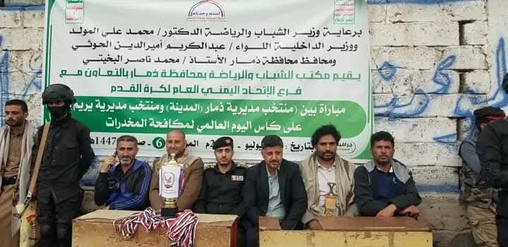 توج منتخب مديرية ذمار "بكأس اليوم العالمي لمكافحة المخدرات " والتي نظمها مكتب الشباب والرياضة بمحافظة ذمار بالشراكة مع فرع مكافحة المخدرات بأدارة الامن وفرع الإتحاد العام لكرة القدم.