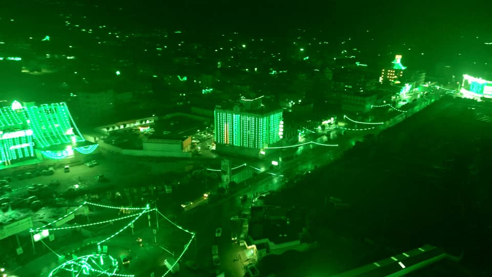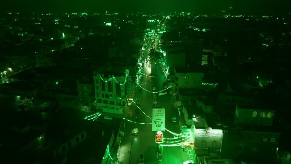 وبدأت في وقت مبكر اعمال تزيين الشوارع العامة ومباني المكاتب والمؤسسات الحكومية والخاصة وتركيب اللوحات القماشية والضوئية وكذا تزيين مداخل عاصمة المحافظة والمدن الثانوية بالأضواء واللافتات والشعارات المعبرة عن الابتهاج بهذه المناسبة الدينية الجليلة.