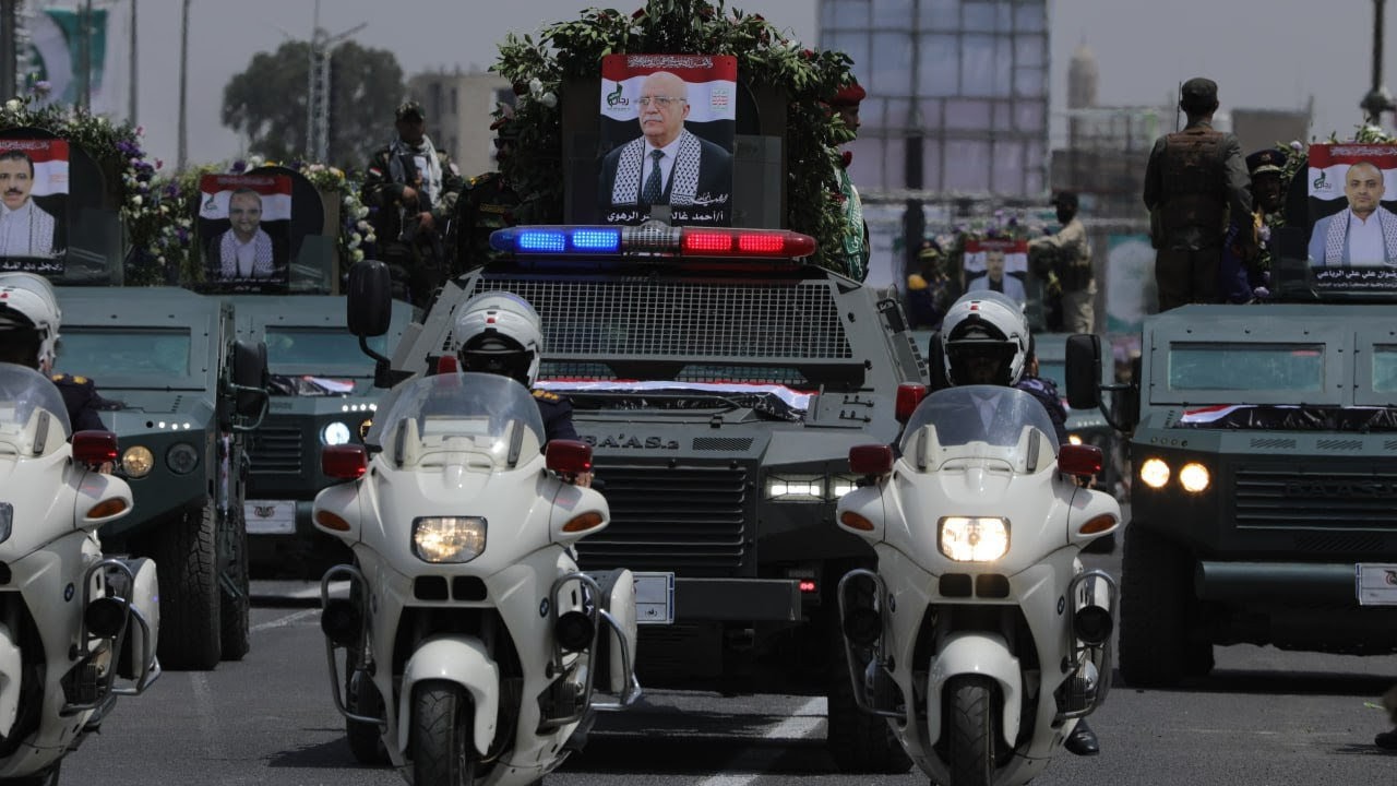 شيع اليمن في موكب جنائزي مهيب اليوم، شهداء حكومة التغيير والبناء الذين ارتقت أرواحهم في العدوان الإسرائيلي الغادر والجبان الذي استهدفهم يوم الخميس الماضي في العاصمة صنعاء.