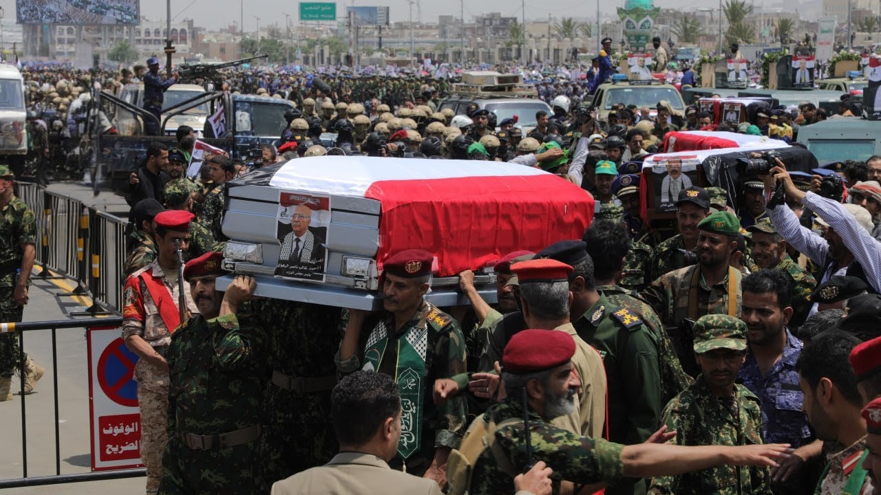وانطلقت مراسم التشييع من ميدان السبعين بالعاصمة صنعاء حيث أُديت صلاة الجنازة، على جثامين الشهداء التي لفت بالعلم، يتقدمها حرس الشرف، ليتم مواراة الجثامين الثرى في روضة الرئيس الشهيد صالح الصماد.