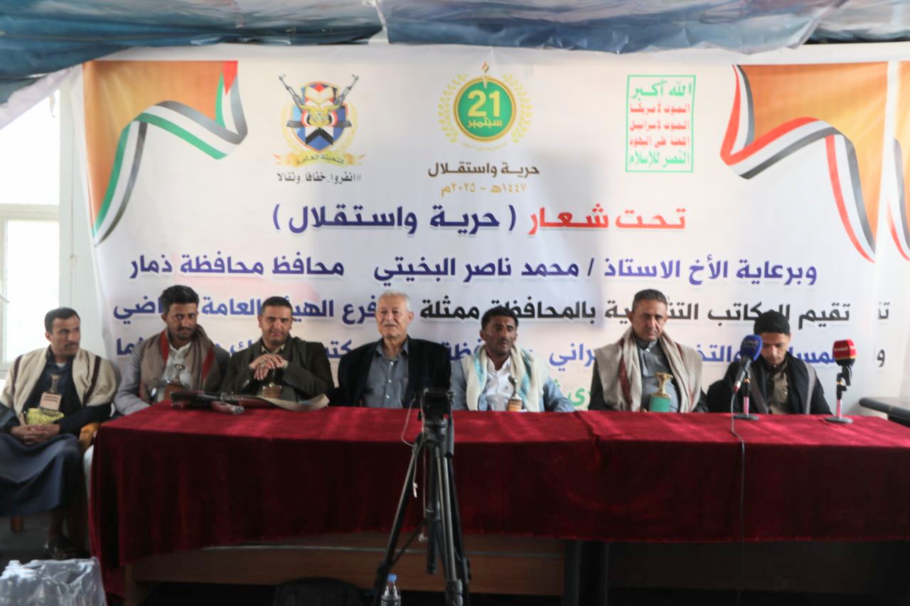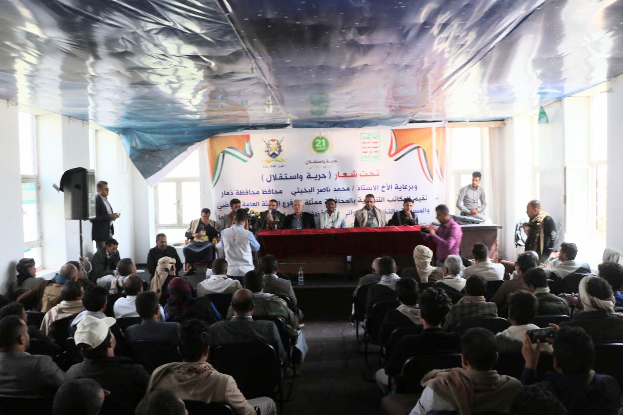 نظما فرع الهيئة العامة للاراضي والمساحة والتخطيط العمراني ومكتب جمارك ورقابة ذمار اليوم فعالية خطابية إحتفاء بالعيد الحادي عشر لثورة 21 سبتمبر.