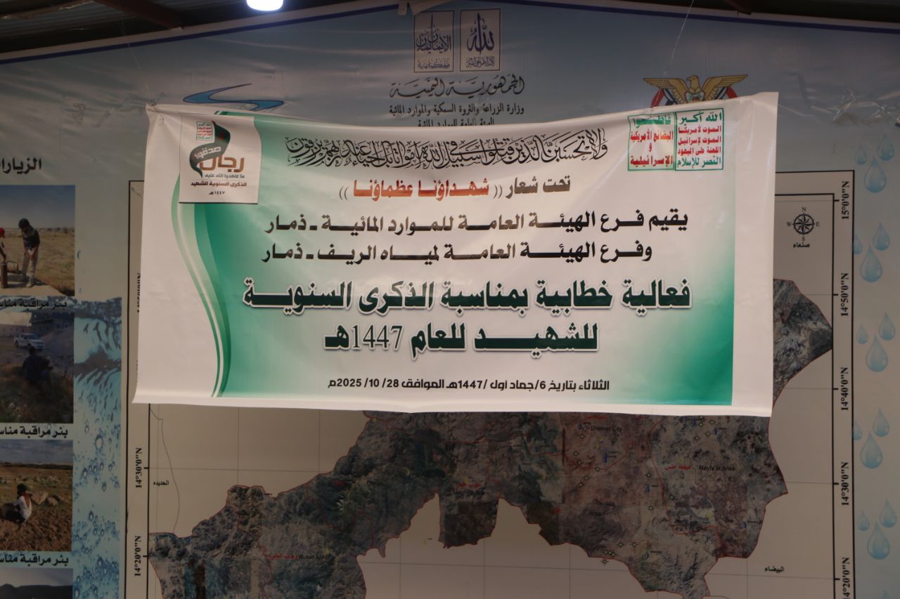 نظم فرعا الهيئة العامة للموارد والمنشآت المائية والهيئة العامة لمشاريع مياه الريف بمحافظة ذمار اليوم فعالية خطابية بالذكرى السنوية للشهيد للعام 1447هـ .