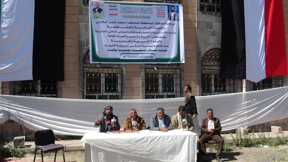 نظّم قطاع التربية والوحدة التربوية بمديرية ذمار، اليوم، فعالية ثقافية بالذكرى السنوية للشهيد للعام 1447ھـ، تحت شعار "الشهادة تضحية ووفاء".