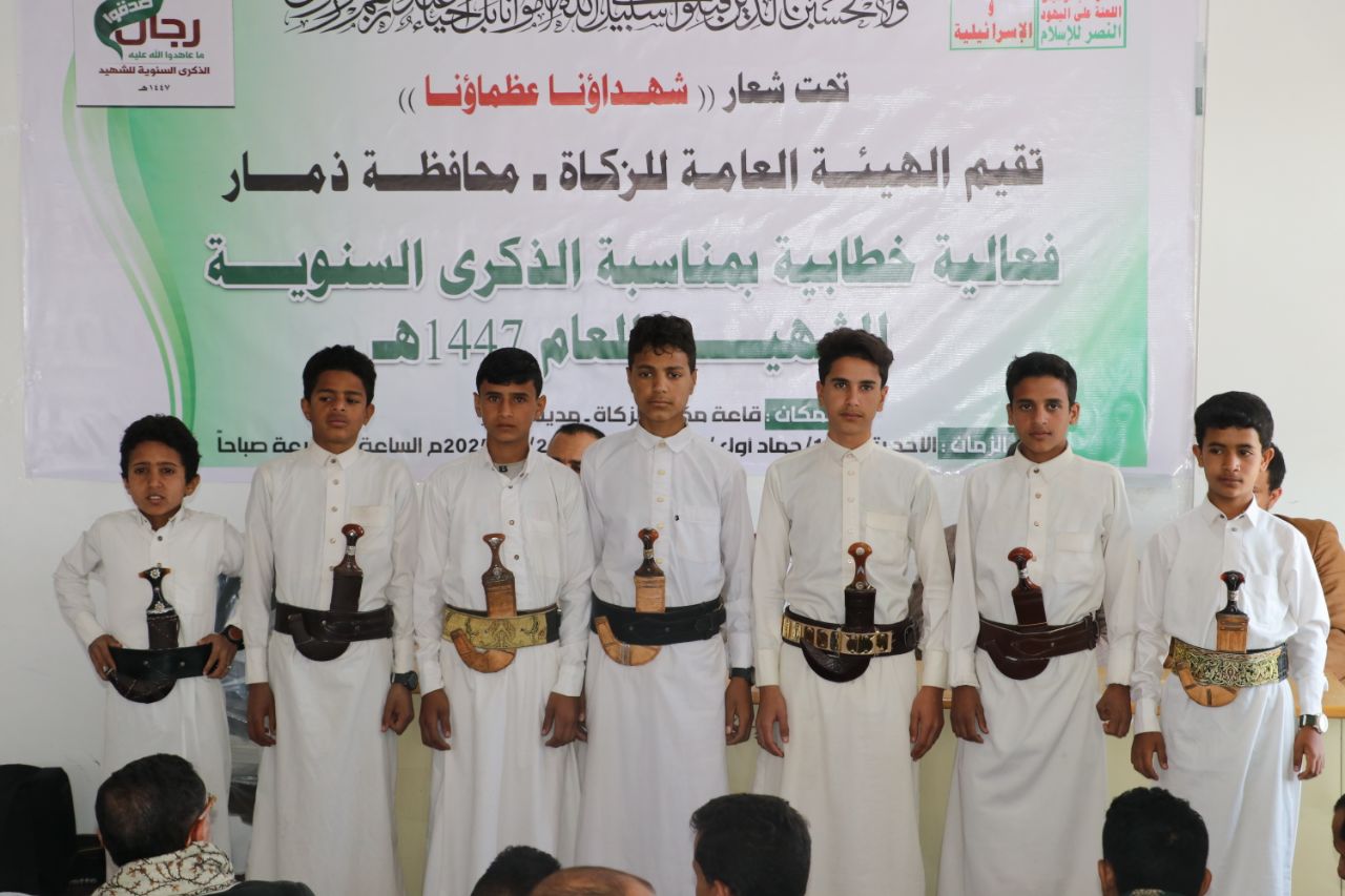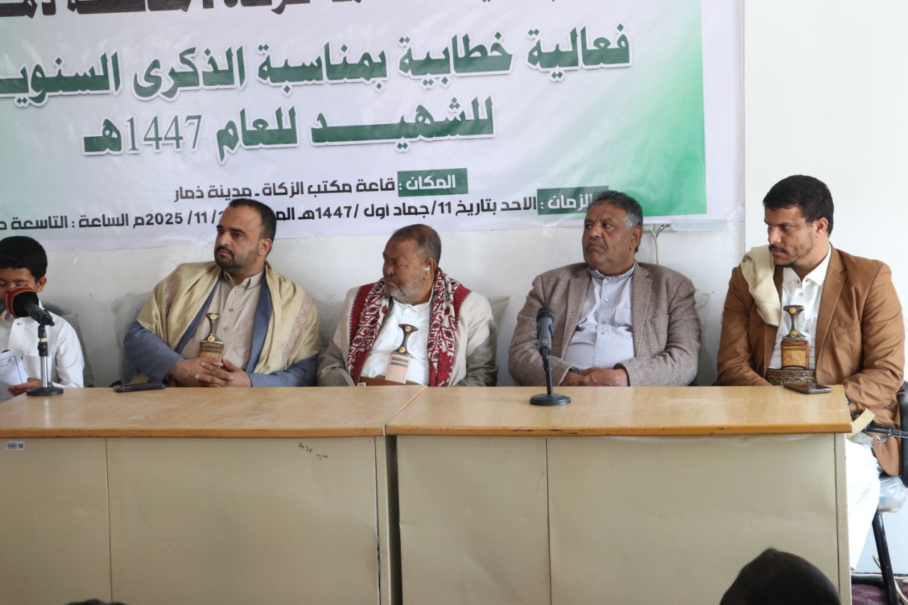 نظم مكتب الهيئة العامة للزكاة بمحافظة ذمار، اليوم، فعالية خطابية وتكريمية لعدد من أسر الشهداء من منتسبي المكتب بمناسبة الذكرى السنوية للشهيد 1447هـ.