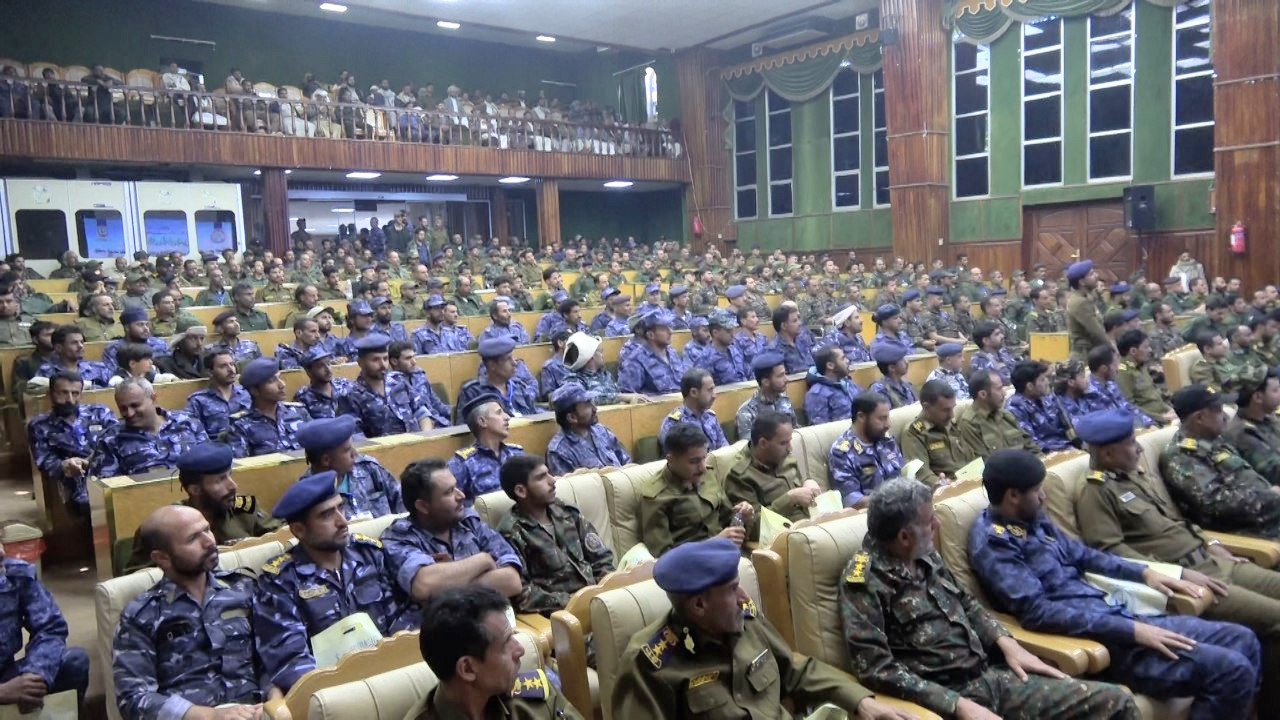 واستعرض نائب وزير الداخلية المحاولات البائسة لقوى الاستكبار العالمي لثني اليمن عن موقفه، من خلال ممارسة ضغوط عسكرية وسياسية واقتصادية، والتي باءت جميعها بالفشل، ووقفت عاجزة أمام إيمان وصدق القيادة وإرادة الشعب، وشجاعة القوات المسلحة والأجهزة الأمنية التي كشفت واعتقلت خلية جواسيس تعمل لصالح الاستخبارات الأمريكية والإسرائيلية والسعودية.