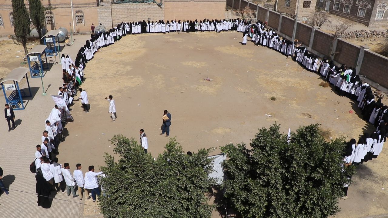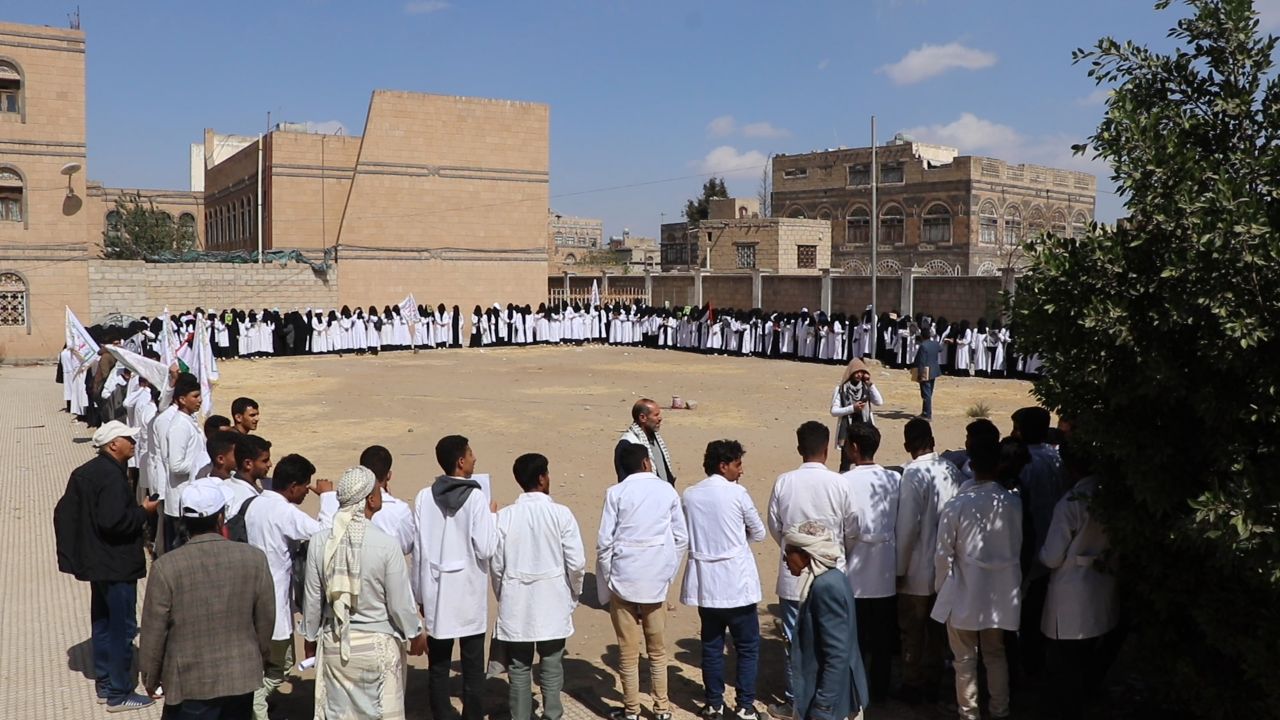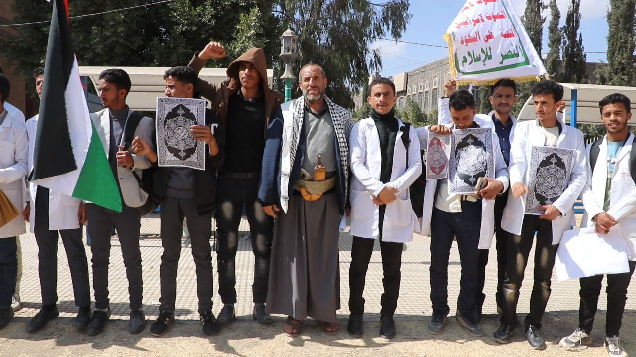 نظم منتسبو المعهد العالي للعلوم الصحية بمحافظة ذمار اليوم وقفة احتجاجية تنديدًا بالإساءة الأمريكية للقرآن الكريم.
