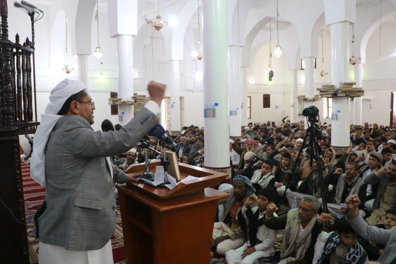 وأشار إلى ثبات الموقف الإيماني في مواجهة الطغيان الامريكي والاسرائيلي وأدوات الخيانة والعمالة.. مؤكدا ان التهاون مع هذه الجرائم و الاساءات يشجع الاعداء على التمادي في عدوانهم على مقدسات الأمة.