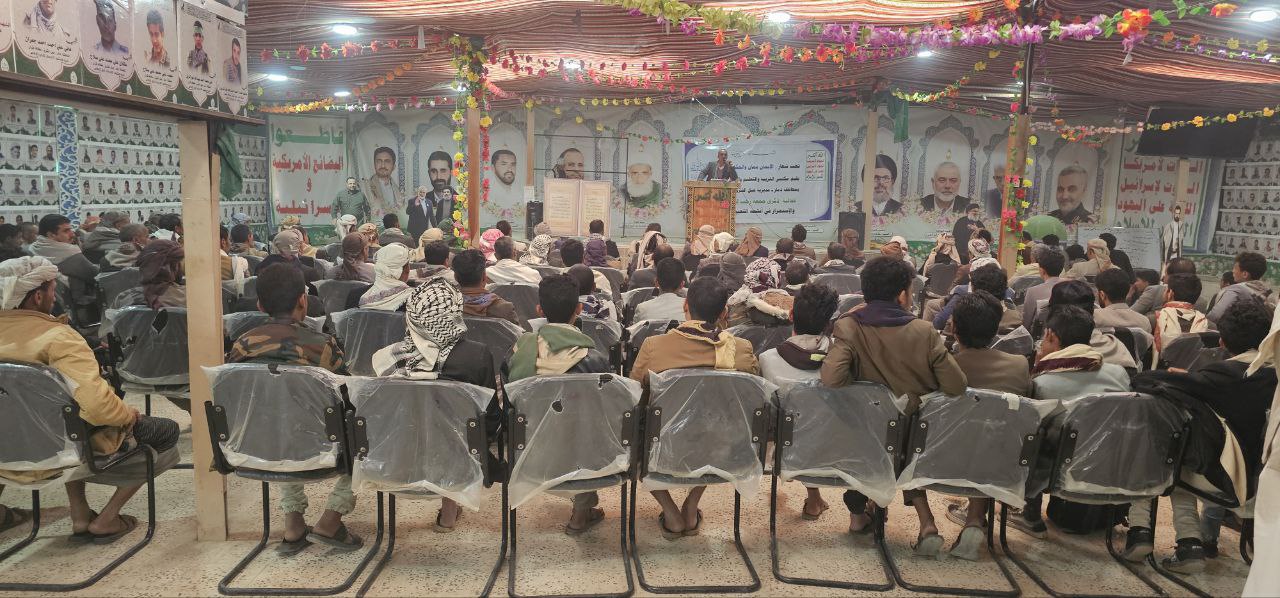 نظمت السلطة المحلية والتعبئة العامة في مديرية المنار بمحافظة ذمار فعالية خطابية بذكرى جمعة رجب، تحت شعار "الإيمان يمان والحكمة يمانية".