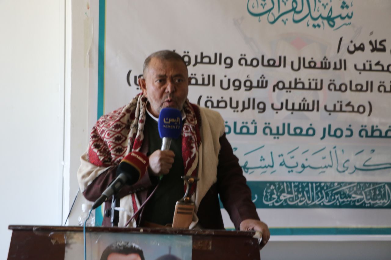 وفي الفعالية أكد وكيل المحافظة محمود الجبين أهمية استلهام الدروس من مواقف وتضحيات الشهيد القائد السيد حسين بدر الدين الحوثي، وجعلها محطة للتسلح بالوعي، وترسيخ الهوية الإيمانية والثقافة القرآنية.
