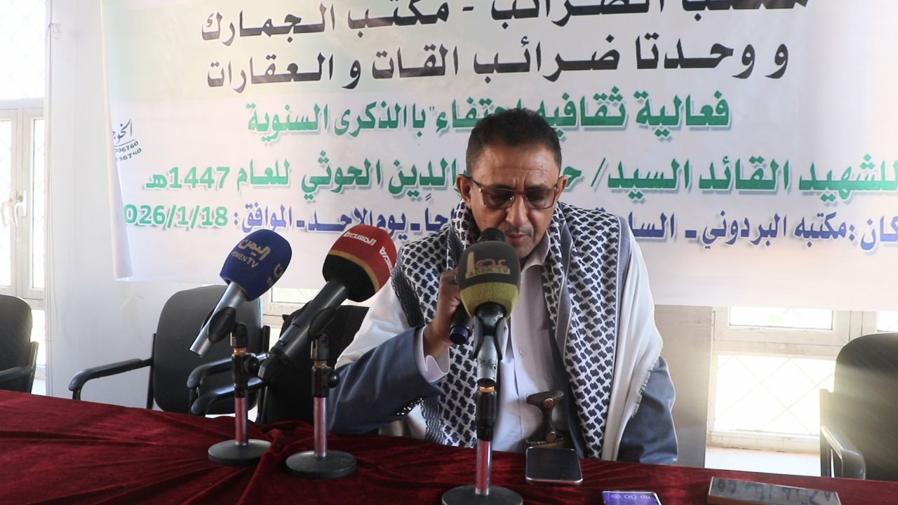 من جهته أوضح مدير عام الضرائب بالمحافظة علي حاتم ان الشهيد القائد حمل على عاتقة راية الحق والجهاد والدين والهدى في الوقت الذي وقف فيه حكام الامة في حالة خضوع وذل وهوان.
