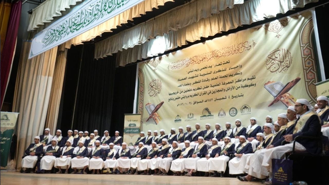 وفي الحفل، بارك مفتي الديار اليمنية العلامة شمس الدين شرف الدين، لطلاب العلم، تخرجهم من مراكز المعرفة العلمية وإجازاتهم للقرآن الكريم بعد أن قطفوا ثمار جهدهم وطلبهم للعلم طيلة عدة سنوات.