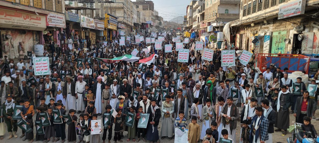 وجدد ابناء محافظة ذمار العهد والثبات على الموقف في نصرة الشعب الفلسطيني والمقدسات، وعلى رأسها المسجد الأقصى الشريف، باعتبار ذلك جزءاً أصيلاً من الهوية الإيمانية للشعب اليمني الذي يرى في الجهاد سبيلاً وحيداً للعزة والكرامة.
