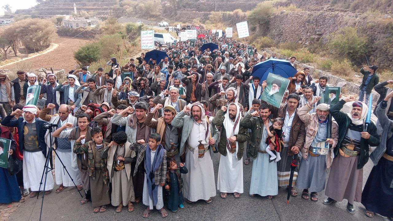 وردد المشاركون في المسيرات التي تقدمها قيادات واعضاء السلطة المحلية والمكتب التنفيذي والتعبوي بالمحافظة والمديريات، هتافات الغضب ضد قوى الطغيان والاستكبار العالمي العدو الأمريكي وكيان الاحتلال الصهيوني.