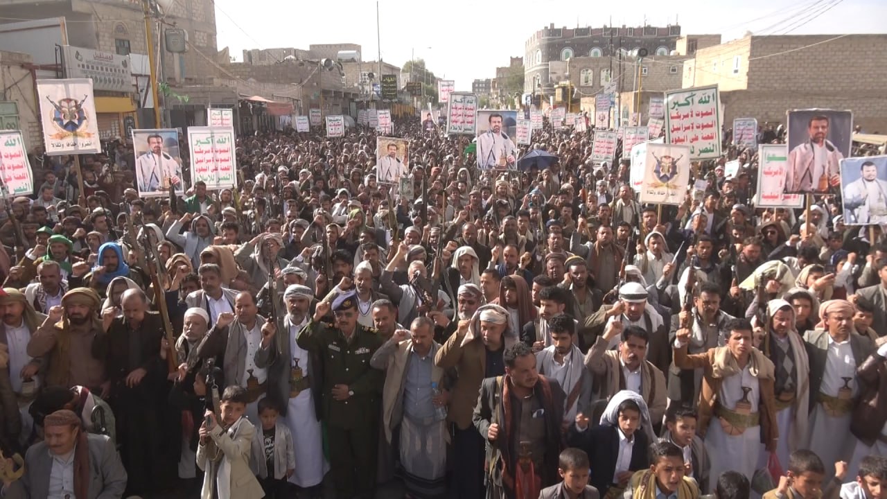 ورفع أبناء محافظة ذمار الشعارات المنددة بقرار كيان الاحتلال الصهيوني الاجرامي باعدام الاسرى الفلسطينين والعدوان الامريكي الصهيوني على الشعبين الايراني واللبناني واستمرار جرائم الابادة في قطاع غزة.