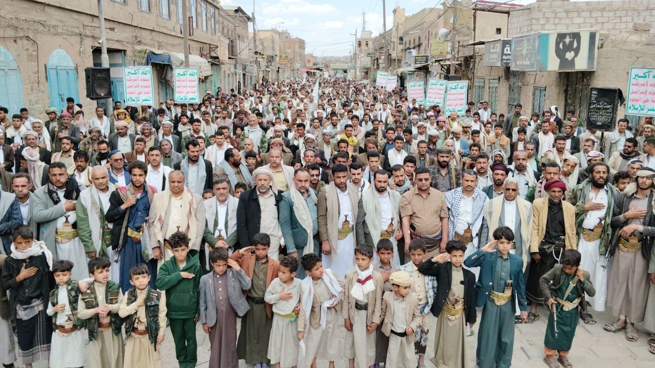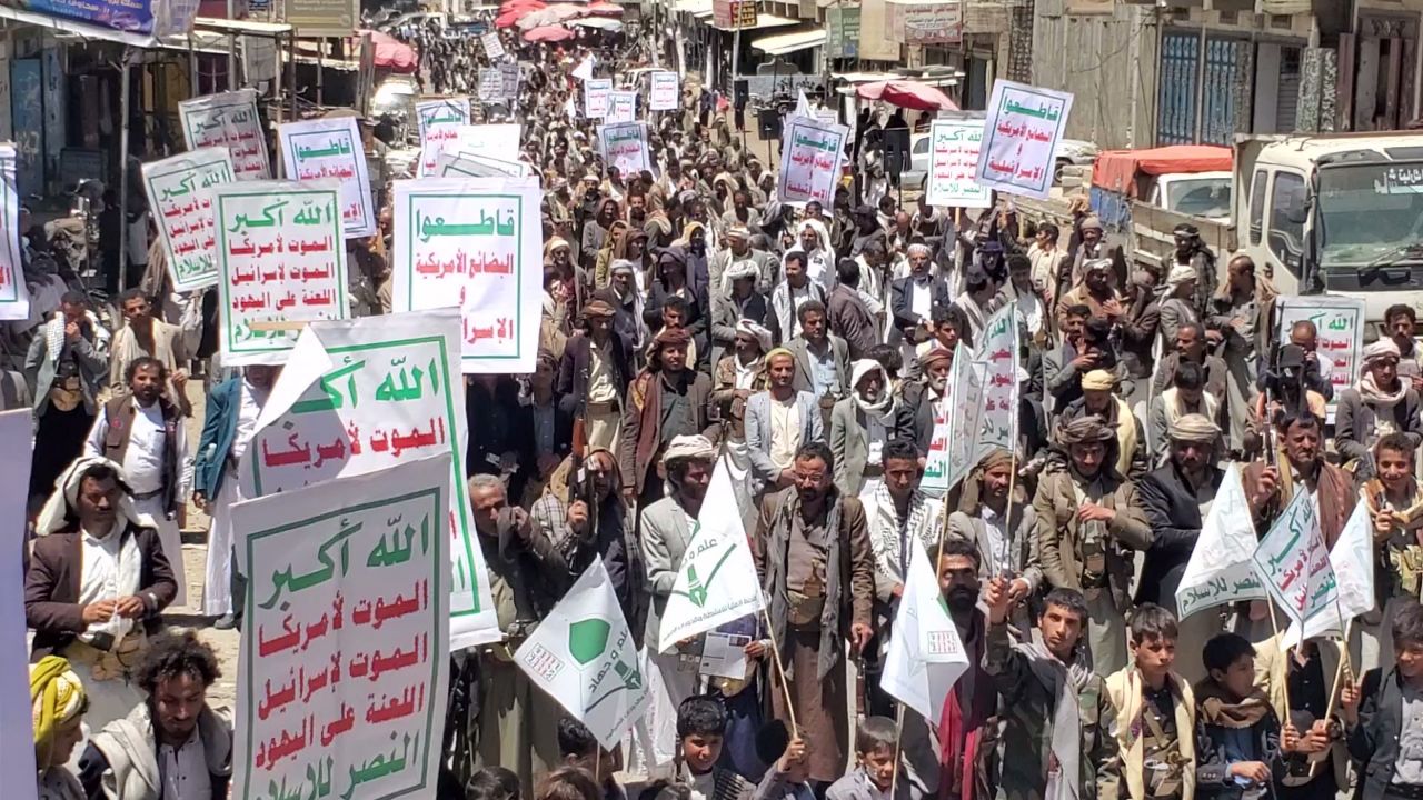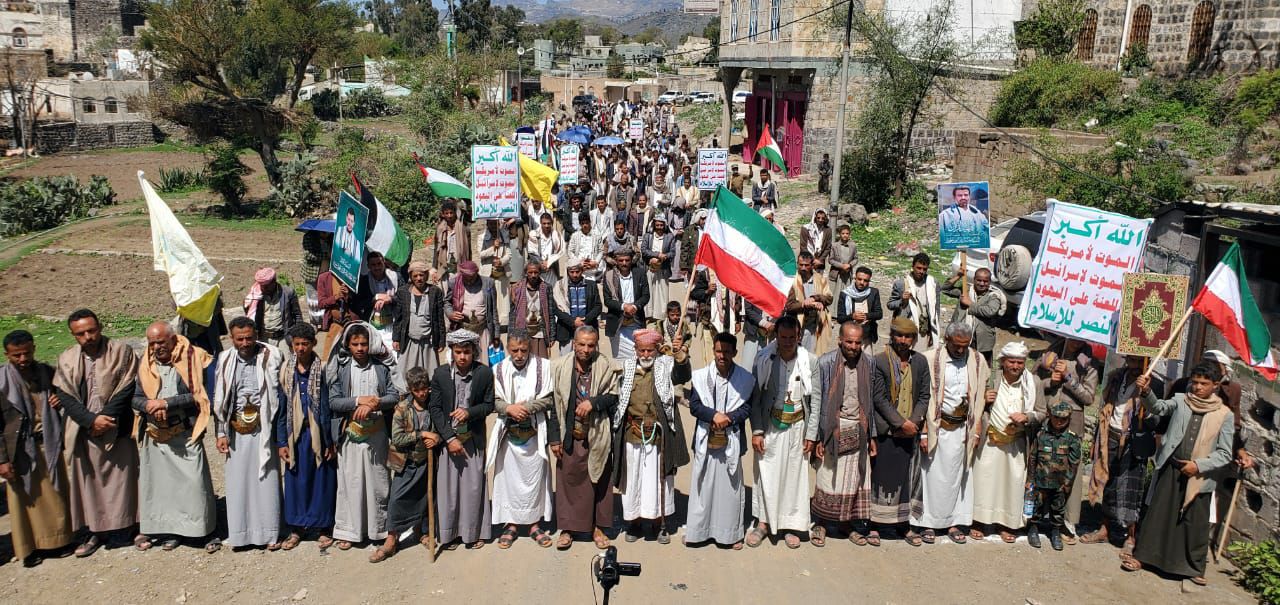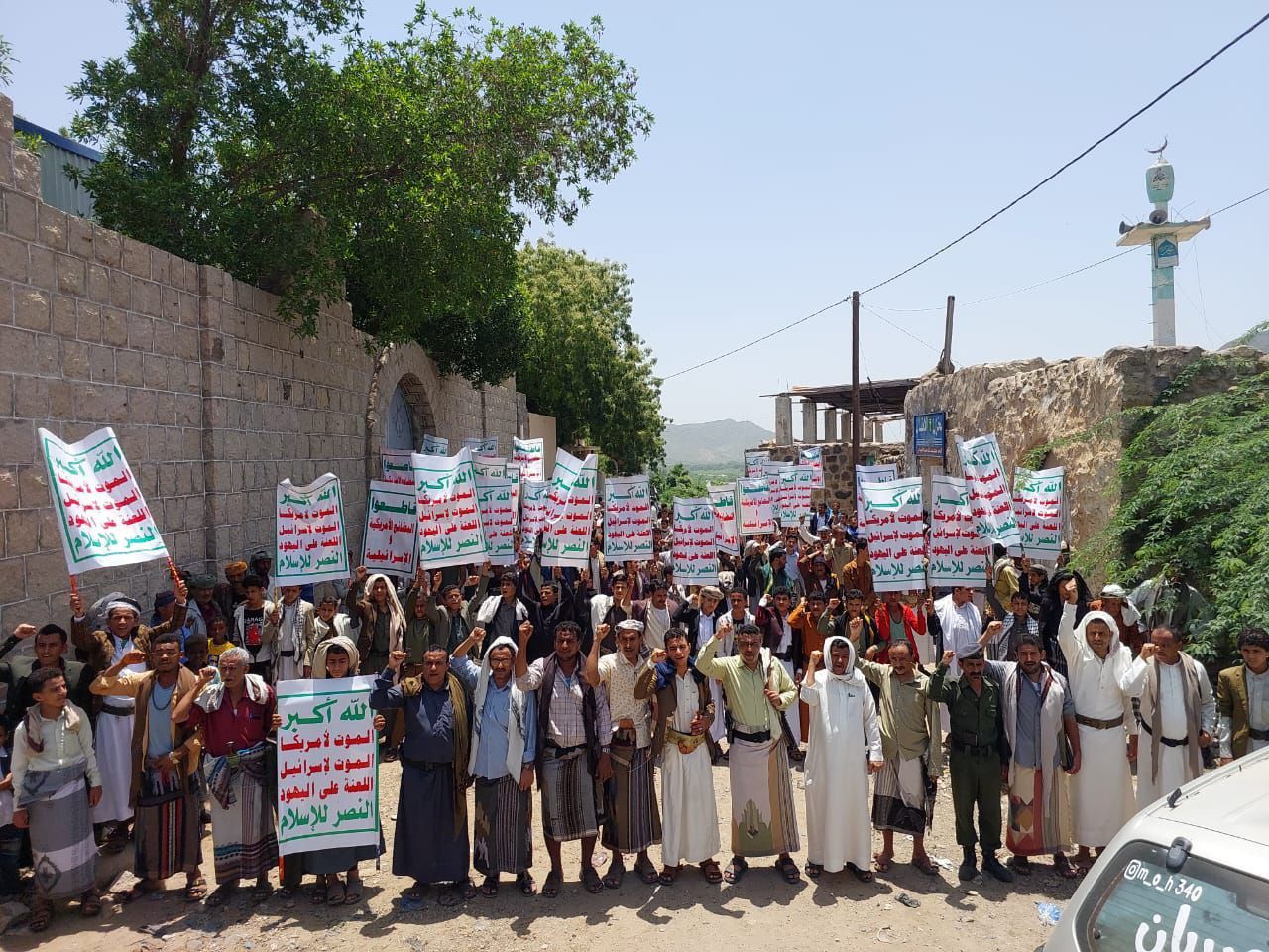 وأكد بيان صادر عن مسيرات محافظة ذمار، على ثبات الموقف المبدئي والإيماني والأخلاقي للشعب اليمني في حمل راية الجهاد، والدفاع عن المقدسات وفي مقدمتها الأقصى المبارك، والوقوف مع الأشقاء في فلسطين، ولبنان، وإيران، وكل جبهات محور المقاومة في مواجهة أئمة الكفر العالمي المتمثل بكيان الاحتلال الصهيوني وأمريكا.