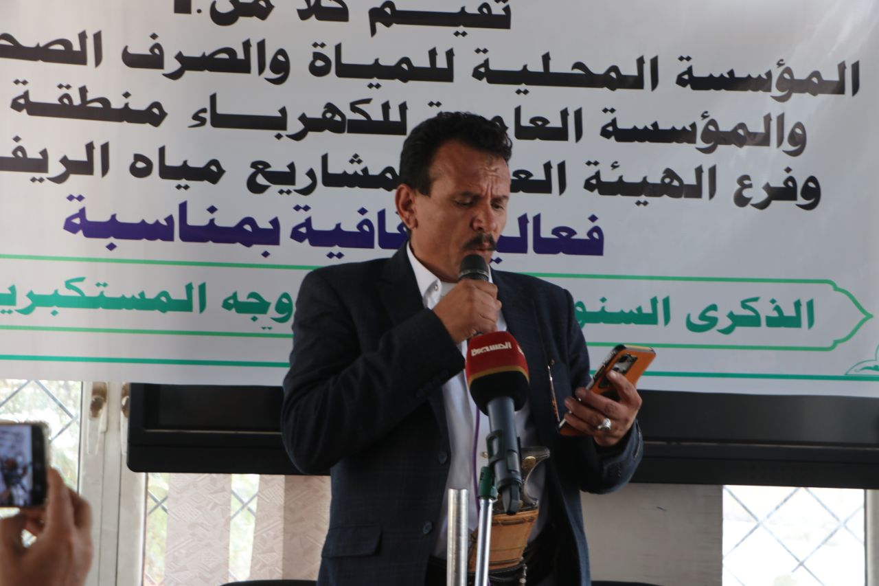 نظمت المؤسسة المحلية للمياه والصرف الصحي، والمؤسسة العامة للكهرباء، وفرع الهيئة العامة لمشاريع مياه الريف بمحافظة ذمار اليوم، فعالية خطابية وثقافية بمناسبة الذكرى السنوية للصرخة في وجه المستكبرين، تحت شعار "الصرخة سلاح وموقف".