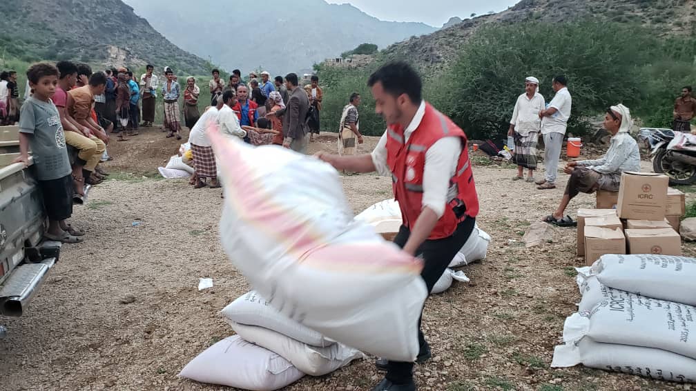 تواصل جمعية الهلال الأحمر اليمني بمحافظة ذمار أعمال أنقاذ المصابين وتوزيع المساعدات الاي ...