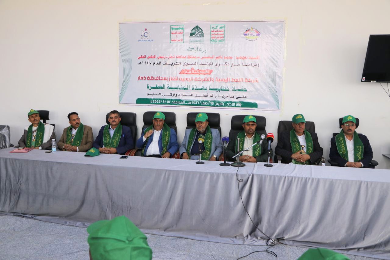 نظم فرعا شركتي النفط والغاز بمحافظة ذمار اليوم، فعالية خطابية بمناسبة ذكرى المولد النبوي ...