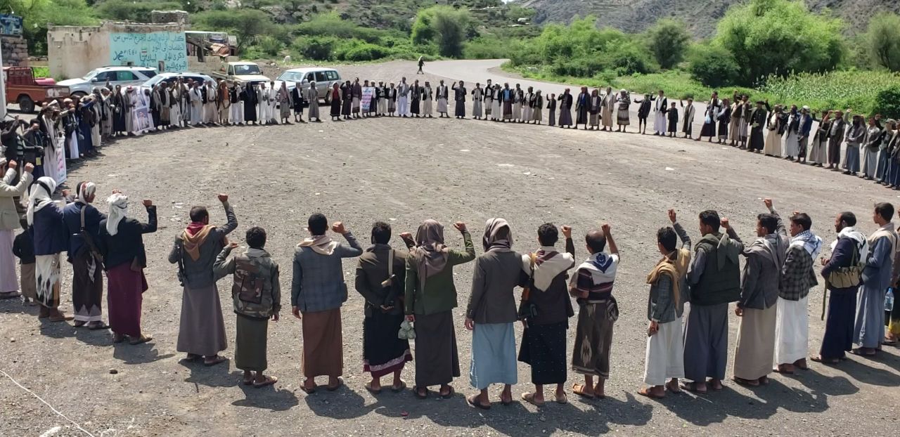 احتشد أبناء وقبائل مُربع مخلاف بني أسعد بمديرية جبل الشرق بمحافظة ذمار اليوم، في وقفة حا ...