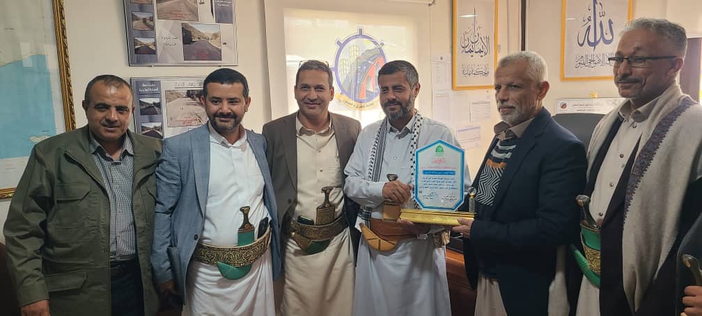 كرم محافظ ذمار محمد ناصر البخيتي اليوم، رئيس صندوق صيانة الطرق المهندس نبيل الحيفي، بدرع ...