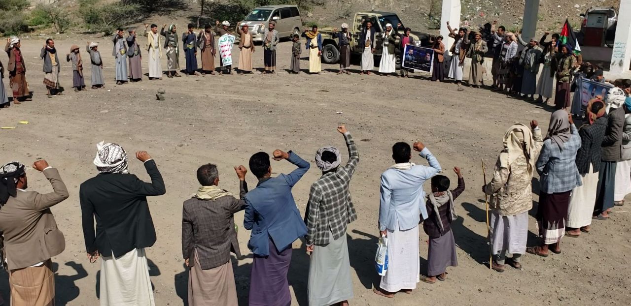 نظم أبناء مُربع مخلاف بني أسعد بمديرية جبل الشرق بمحافظة ذمار اليوم، وقفة شعبية تضامناً ...