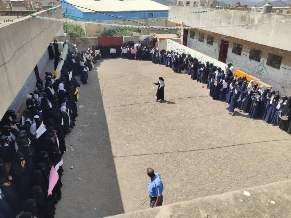 وفي ذات السياق نظمت مُعلمات وطالبات مدارس قطاع مدينة الشرق بمديرية جبل الشرق بمحافظة ذمار اليوم، وقفة تربوية وطلابية غاصبة حاشدة، تنديداً بجريمة إغتيال القائد الكبير المُجاهد حسن نصرالله الأمين العام لحزب الله.