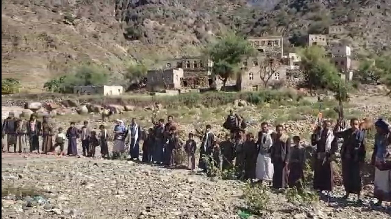 نظم أبناء وادي الصافية بعزلة شجن بمديرية مغرب عنس محافظة ذمار وقفة تضامنية مع الشعبين الفلسطيني واللبناني تحت شعار "مع غزة ولبنان.. جهوزية واستنفار ضد قوى الإستكبار"