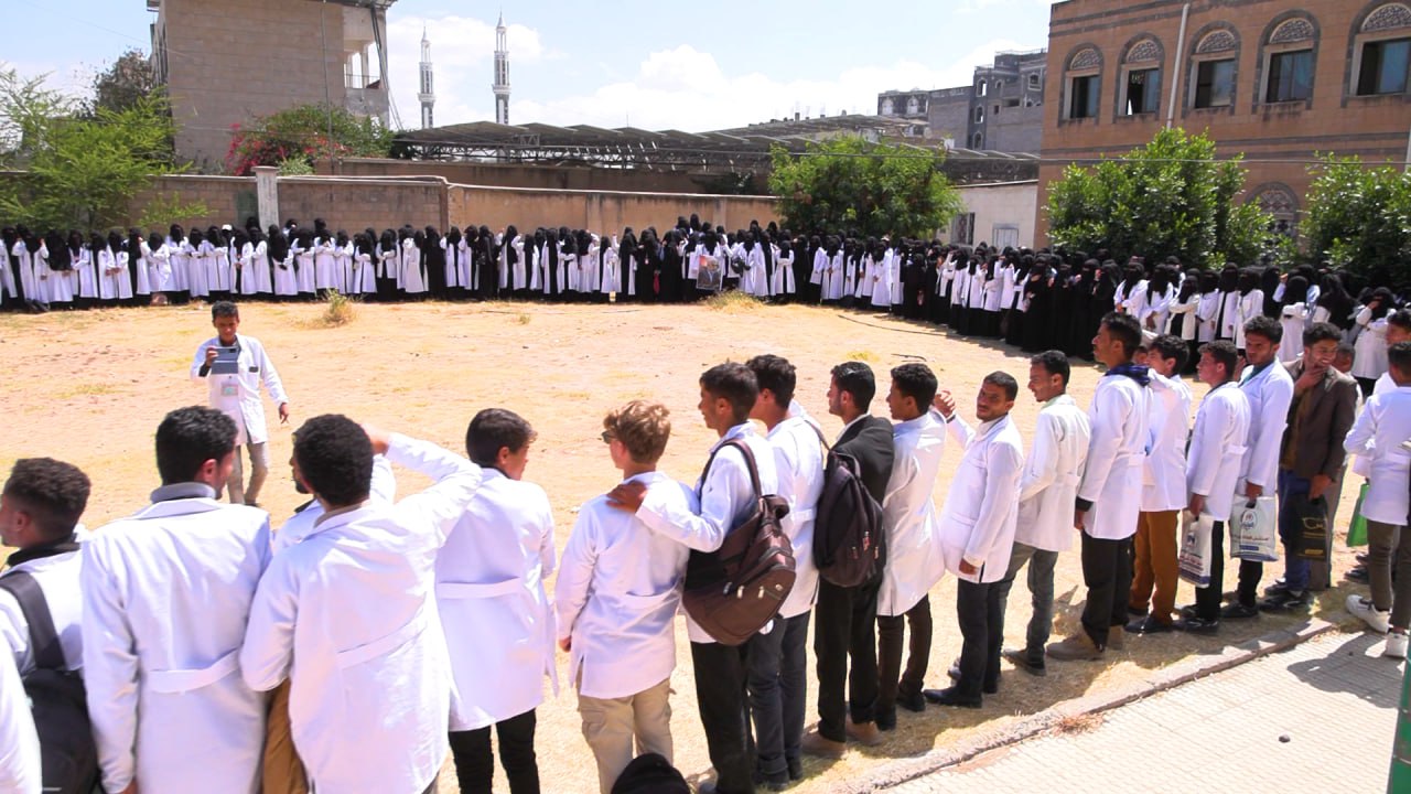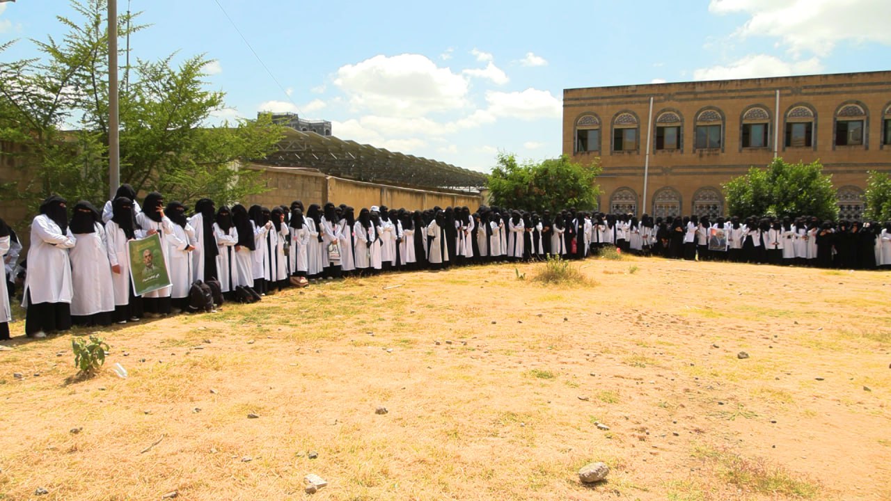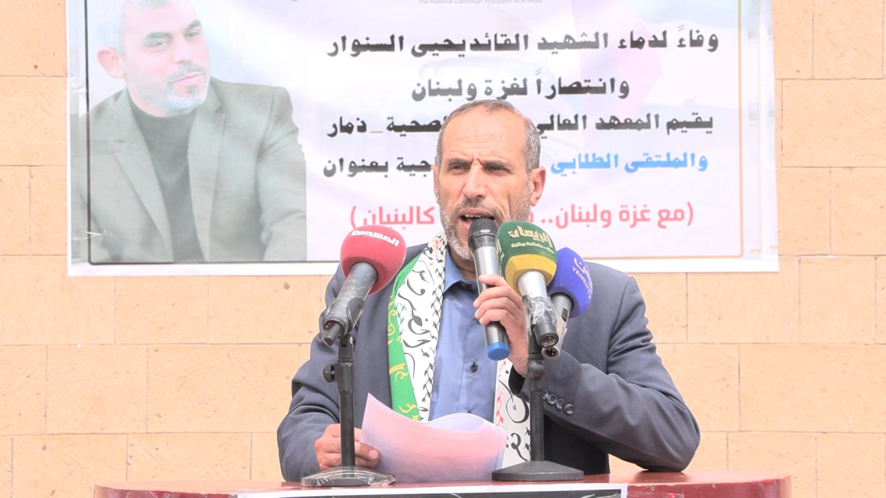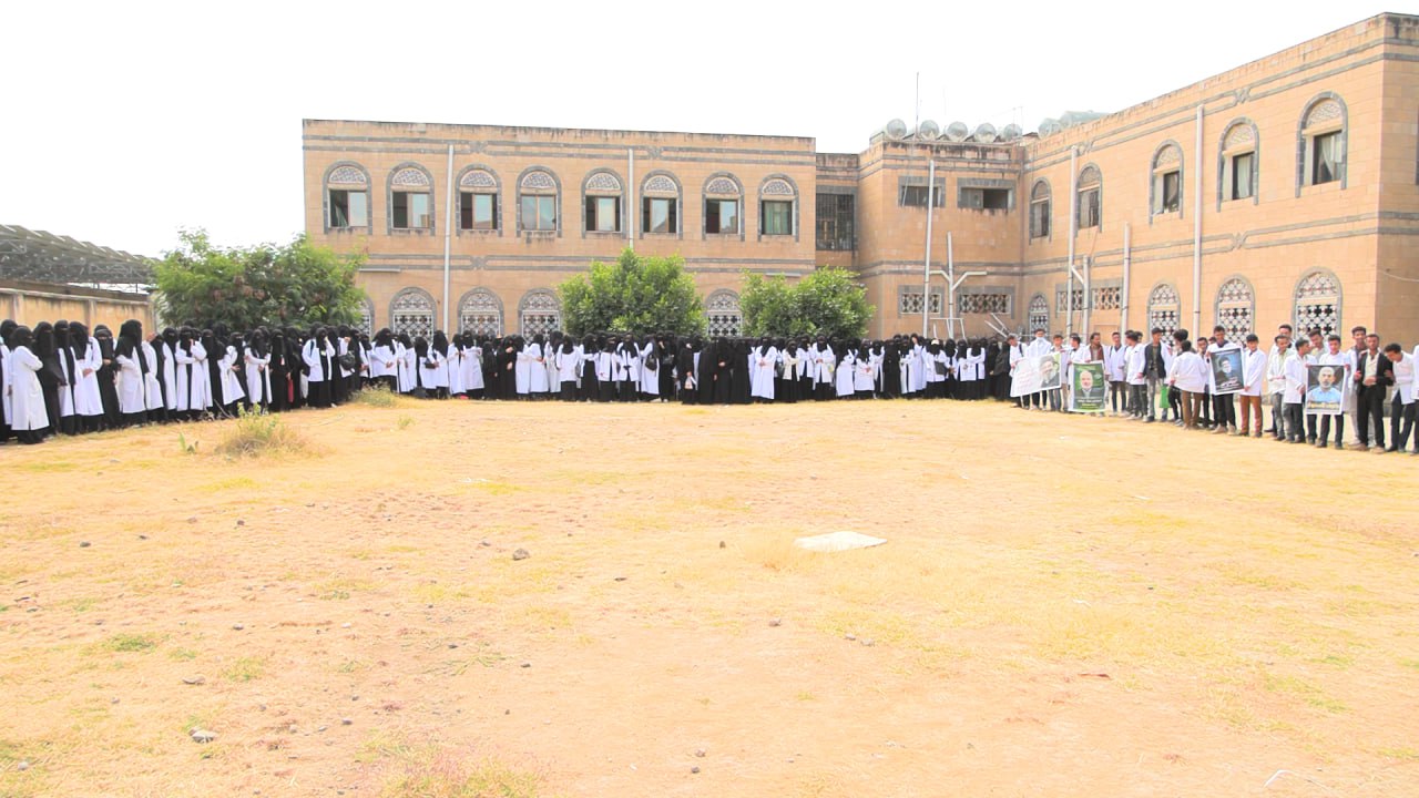 نظم المعهد العالي للعلوم الصحية بذمار اليوم، وقفة طلابية تنديداً بجرائم العدو الصهيوني بغزة ولبنان وجريمة اغتيال القائد العظيم يحيى السنوار رئيس المكتب السياسي لحركة حماس تحت شعار "مع غزة ولبنان صف واحد كالبنيان".