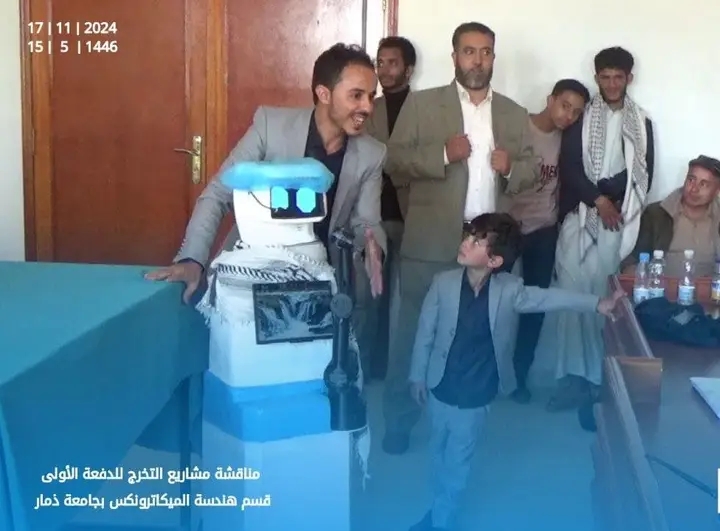 ابتكر طلاب قسم الميكاترونكس في كلية الهندسة بجامعة ذمار روبوت طبي لقياس العلامات الحيوية للمريض ، وروبوت أخر انساني مصمم لتشخيص الأمراض و التفاعل مع البشر.