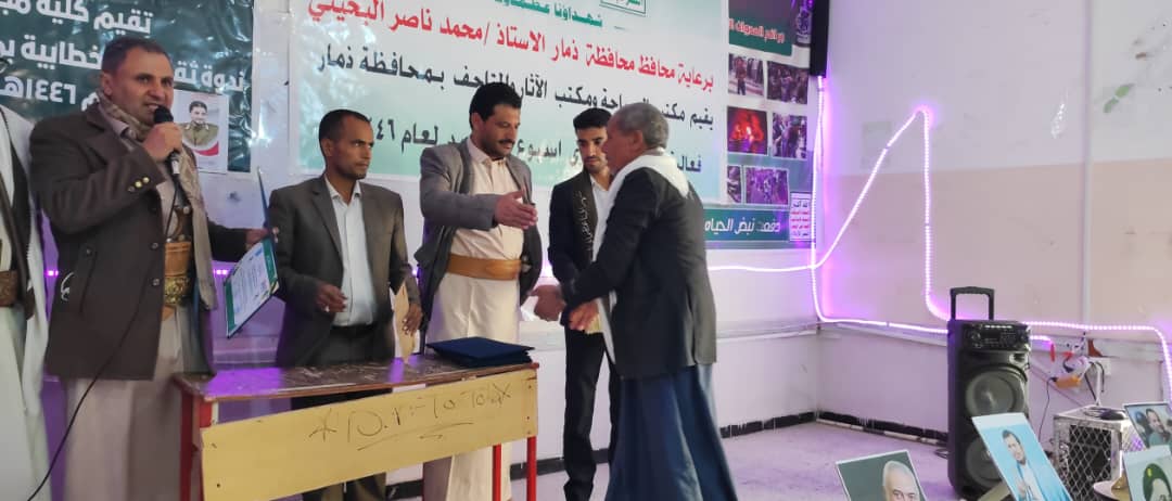 نظم مكتبي السياحة والأثار والمتاحف وكلية المجتمع بذمار اليوم فعالية ثقافية وتكريمية لأسر الشهداء بمناسبة الذكرى السنوية للشهيد للعام 1446هـ .