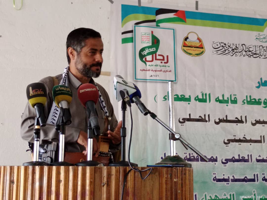 وأكد أهمية الوفاء لتضحيات الشهداء من خلال الاهتمام بأسرهم وذويهم، ومواصلة السير على دربهم في التضحية حتى تحقيق النصر.