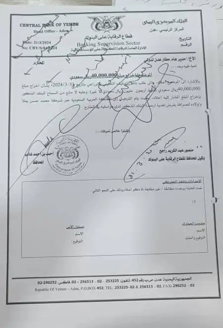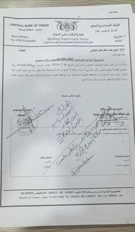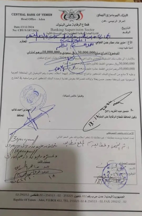 كما كشفت الوثائق انه وخلال العام الجاري 2024 ،تم إخراج مبالغ ضخمة عبر مطار عدن الدولي ، على النحو التالي.