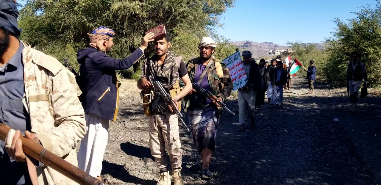 نظم خريجو الدفعتين الثامنة لدورات "طوفان الأقصى" في عزلة السواد وقرية الكراع بعزلة الكميم في مديرية الحداء بمحافظة ذمار ، مناورات عسكرية.