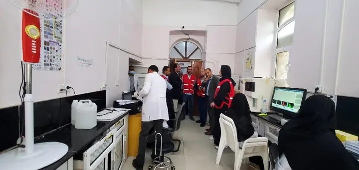 وعقب التسليم زار ممثلوا الصليب الأحمر وبرنامج الشراكة البرامجية المركز الطبي التابع لجمعية الهلال الاحمر اليمني بذمار.