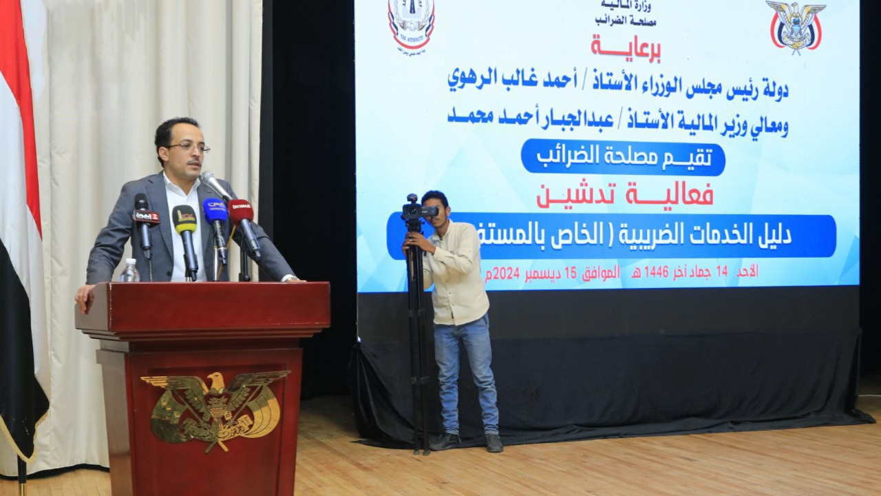دشن رئيس مجلس الوزراء أحمد غالب الرهوي اليوم، دليل الخدمات الضريبية الخاص بالمستفيدين في مصلحة الضرائب.