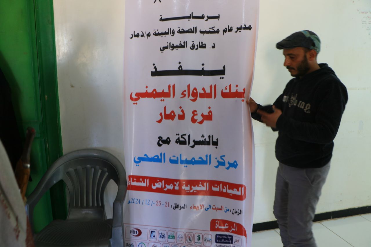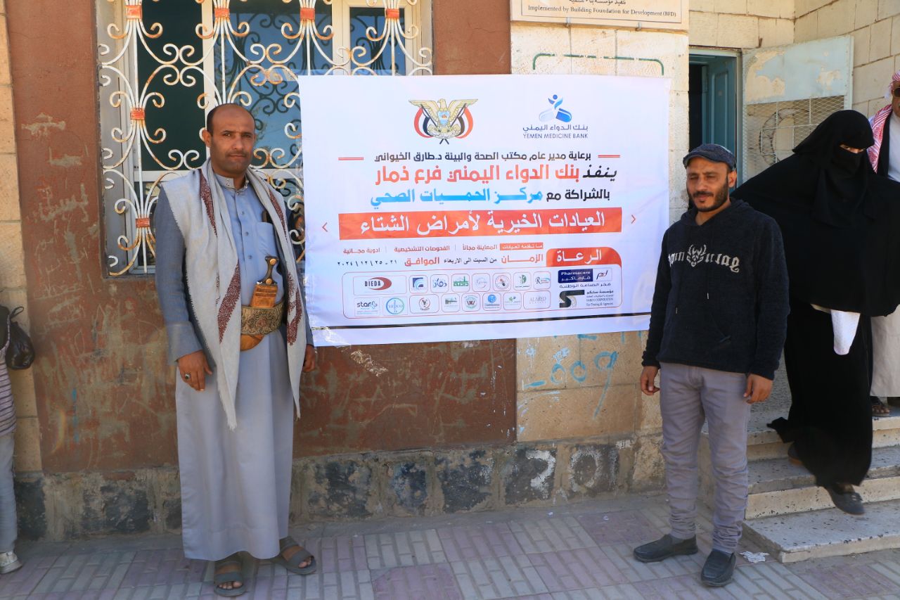 دشن فرع بنك الدواء اليمني بمحافظة ذمار بالشراكة مع مستشفى الحميات اليوم، العيادات الخيرية لأمراض الشتاء بمدينة ذمار.