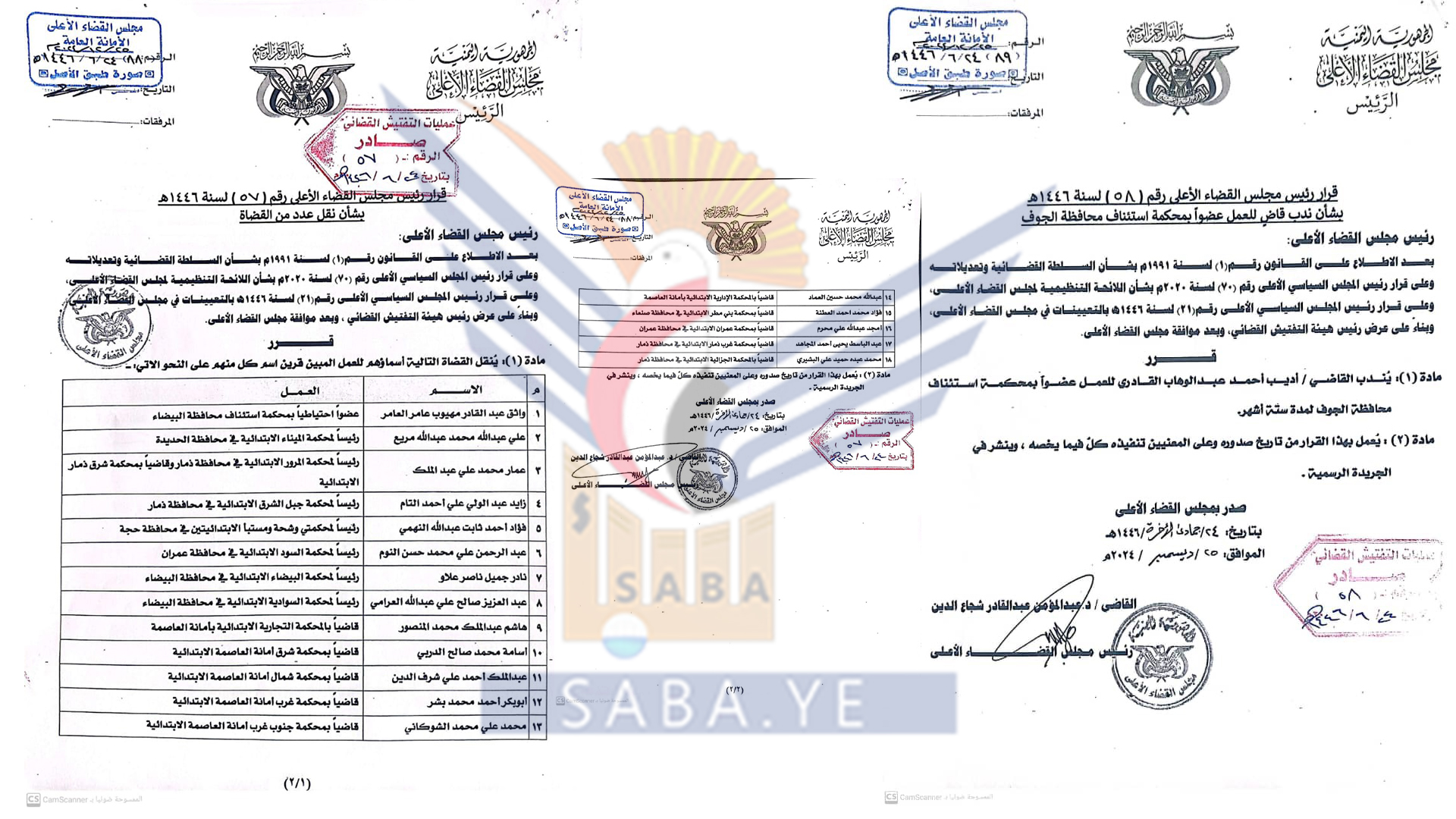 صدر اليوم قرار رئيس مجلس القضاء الأعلى القاضي الدكتور عبدالمؤمن شجاع الدين، رقم (57) بنقل عدد من القضاة للعمل في عدد من المحاكم على النحو الآتي: