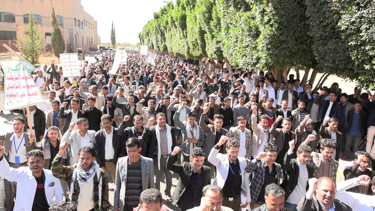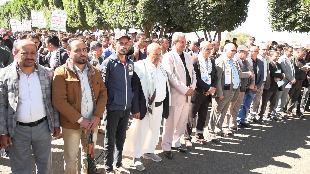 وهتف المشاركون، شعارات تدعو للنفير العام لمواجهة العدو الأمريكي، الإسرائيلي، والبريطاني ومؤامراتهم العدوانية في المنطقة، والتأكيد على الاستمرار في مناصرة الشعب الفلسطيني حتى وقف العدوان والحصار على قطاع غزة.