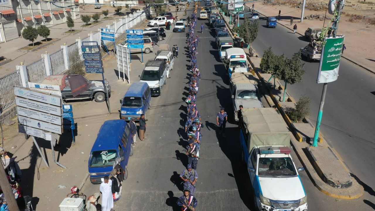 وأنطلق المسير الذي تقدمة مدير عام شرطة المحافظة العميد محمد غالب المهدي ومساعديه ومدراء الإدارات وقادة الوحدات الأمنية واقسام الشرطة من الاستاد الرياضي مرورا بعدد من الشوارع بمدينة ذمار.