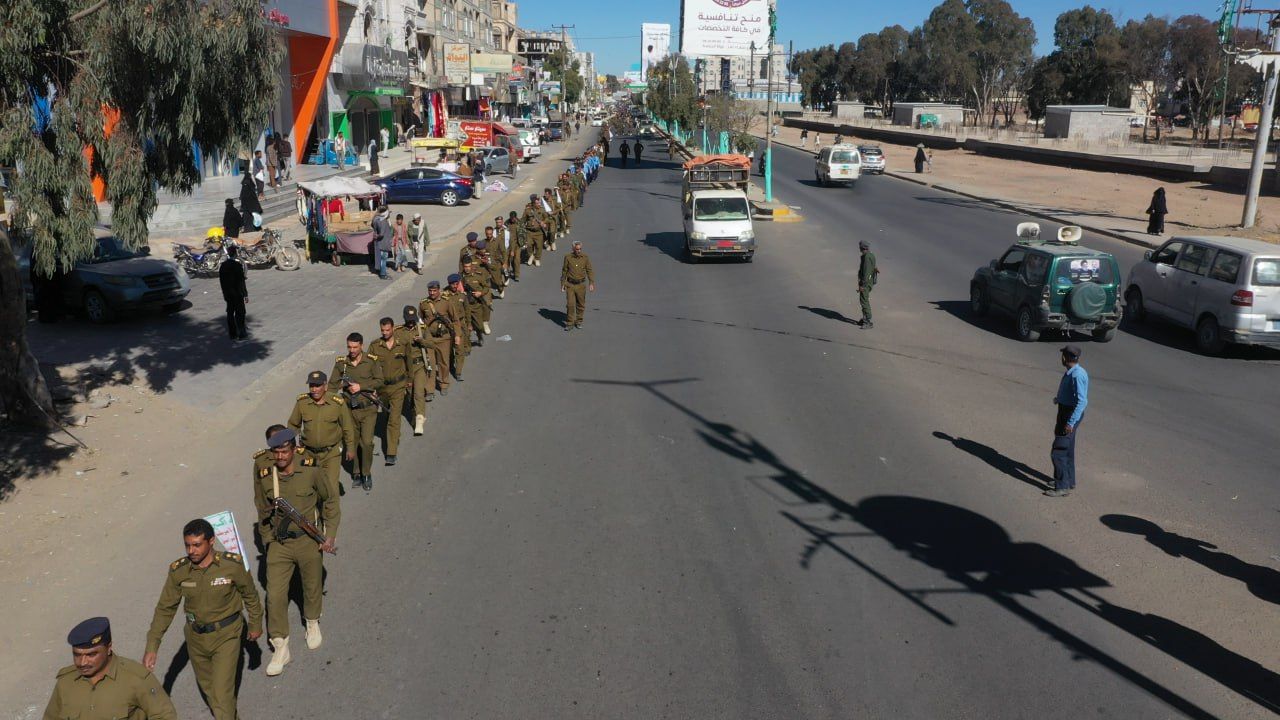 نظمت شرطة محافظة ذمار اليوم مسيرا رمزيا وعرضا عسكريا للوحدات الأمنية في إطار النفير والجهوزية والاستعداد لمواجهة تصعيد العدو الامريكي الصهيوني.