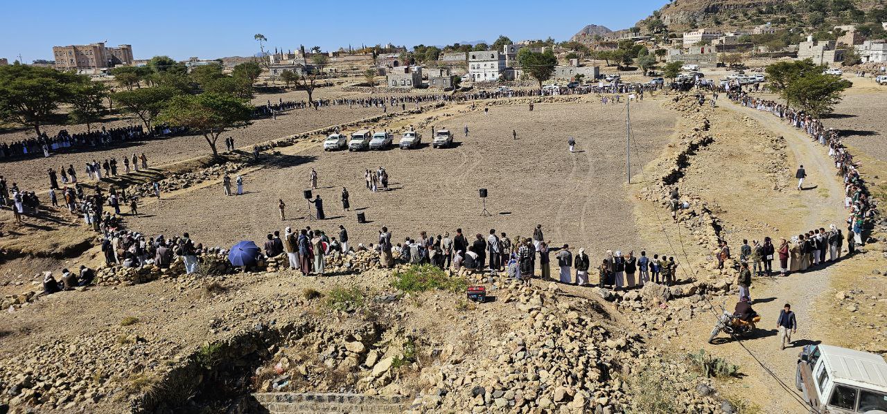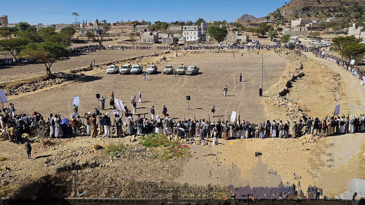 وفي مديرية مغرب عنس نظمت اللجنة القبلية لدعم حملة طوفان الأقصى بنجد القرضة عزلة بني طيبة اليوم لقاء قبليا موسعا ووقفة قبيلة مسلحة لاعلان النفير العام والجهوزية لخوض معركة الفتح الموعود والجهاد المقدس