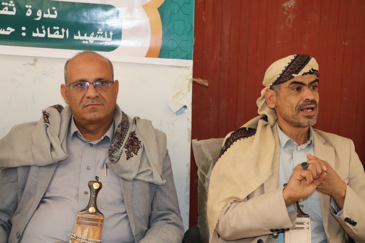 وفي ذات السياق نظم مكتب التربية والتعليم بمديرية عتمة اليوم ندوة ثقافية لإحياء الذكرى السنوية للشهيد القائد السيد حسين بدر الدين الحوثي .