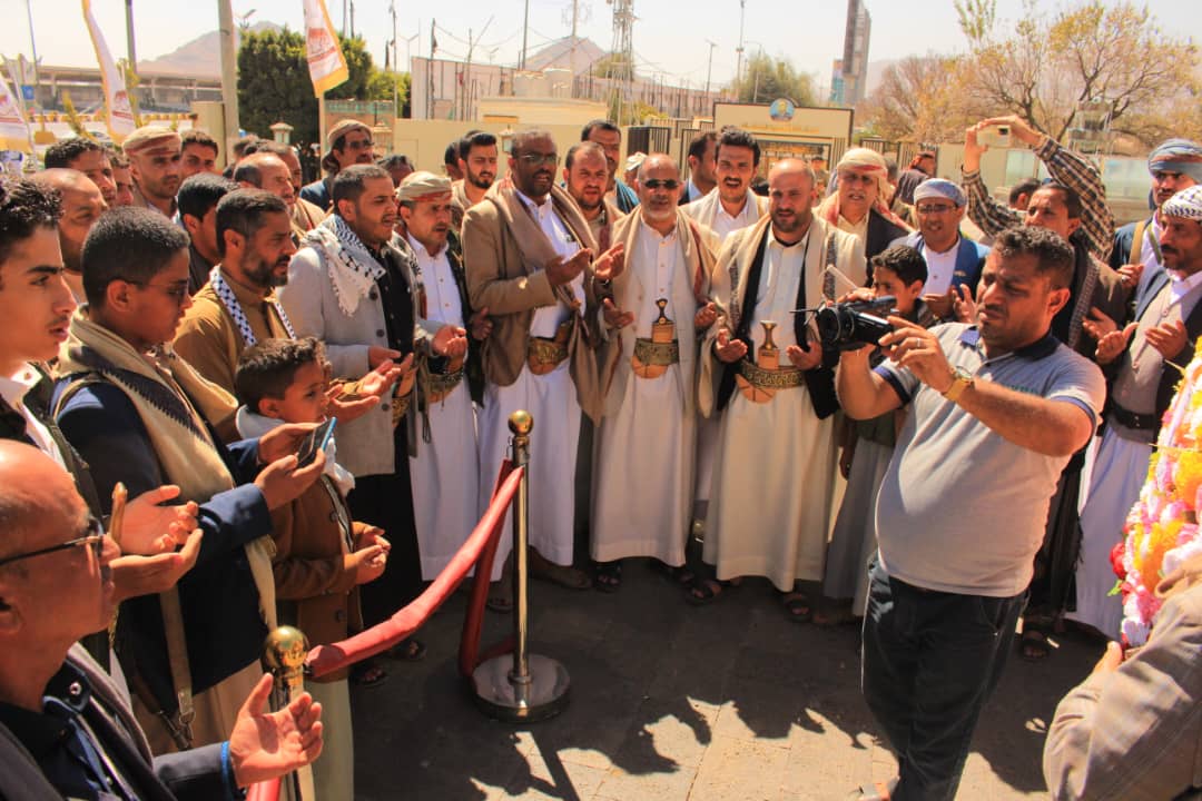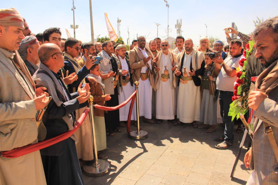 ووضع الزائرون، إكليلًا من الزهور على ضريح الشهيد الرئيس الصماد ورفاقه، وتم قراءة الفاتحة على أرواحهم وأرواح كافة شهداء الوطن الذين سطروا ملاحم بطولية في مواجهة العدوان الأمريكي، السعودي والإماراتي.