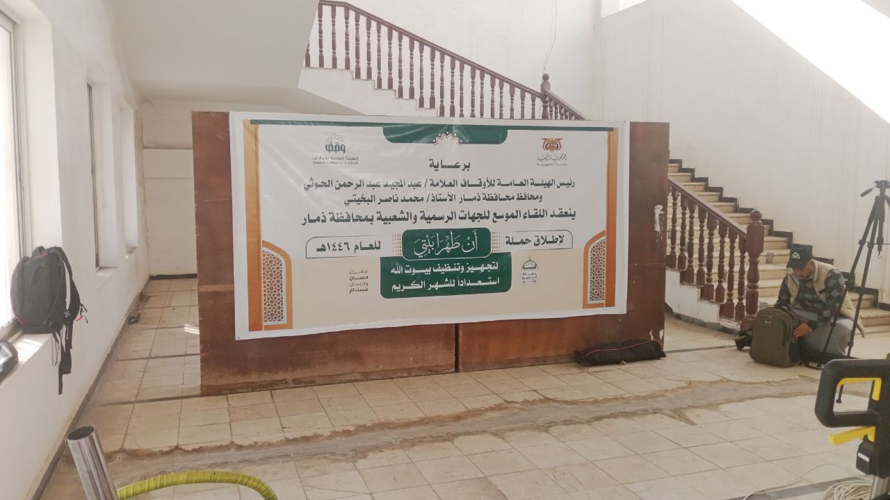 دشن مكتب الهيئة العامة للأوقاف بمحافظة ذمار اليوم حملة "أن طهرا بيتي" لتجهيز وتنظيف بيوت الله استعدادا لاستقبال شهر رمضان المبارك .