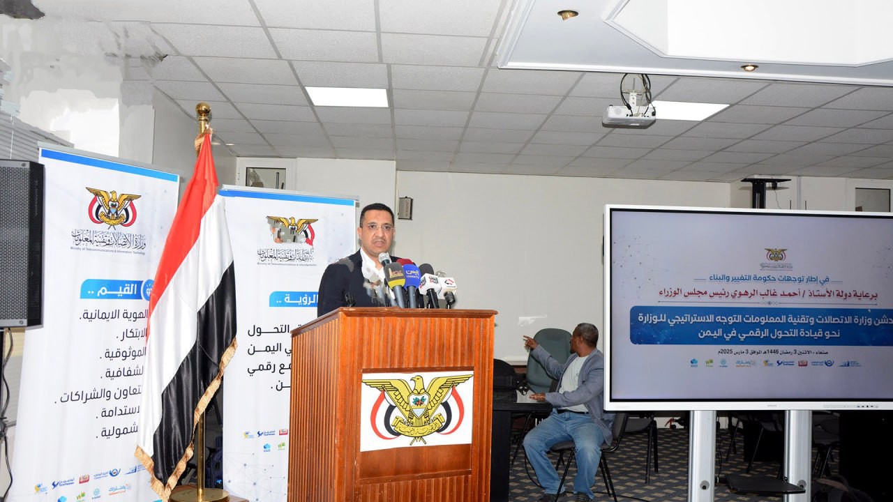 وبين أن هذا التوجه يأتي في إطار الجهود المستمرة لتعزيز دور الاتصالات وتقنية المعلومات في بناء مستقبل أفضل لليمن، وتحت شعار "نحو قيادة التحول الرقمي في اليمن".
