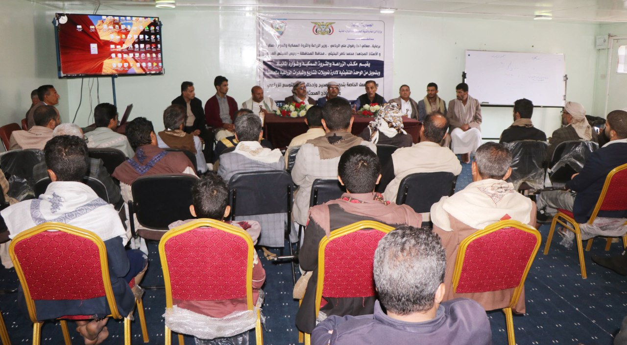 نظم مكتب الزراعة والثروة السمكية والموارد المائية بمحافظة ذمار وبتمويل من الوحدة التنفيذية لإدارة تمويلات المشاريع والمبادرات الزراعية اليوم ورشة عمل خاصة بتحديد وتصحيح وإدخال بيانات التوسع الزراعي وفق النماذج الحديثة .