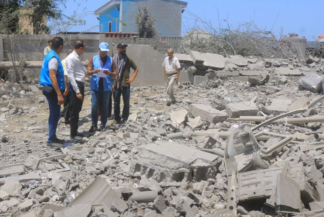 اطلع فريق من البعثة الأممية "الاونهما" برئاسة محمد رفيق الإسلام، اليوم، على الأضرار الناجمة عن استهداف العدوان الأمريكي لمبنى فرع الهيئة العامة للشؤون البحرية في ميناء الحديدة بعدة غارات، والذي أدى إلى تدميره وخروجه عن الخدمة.