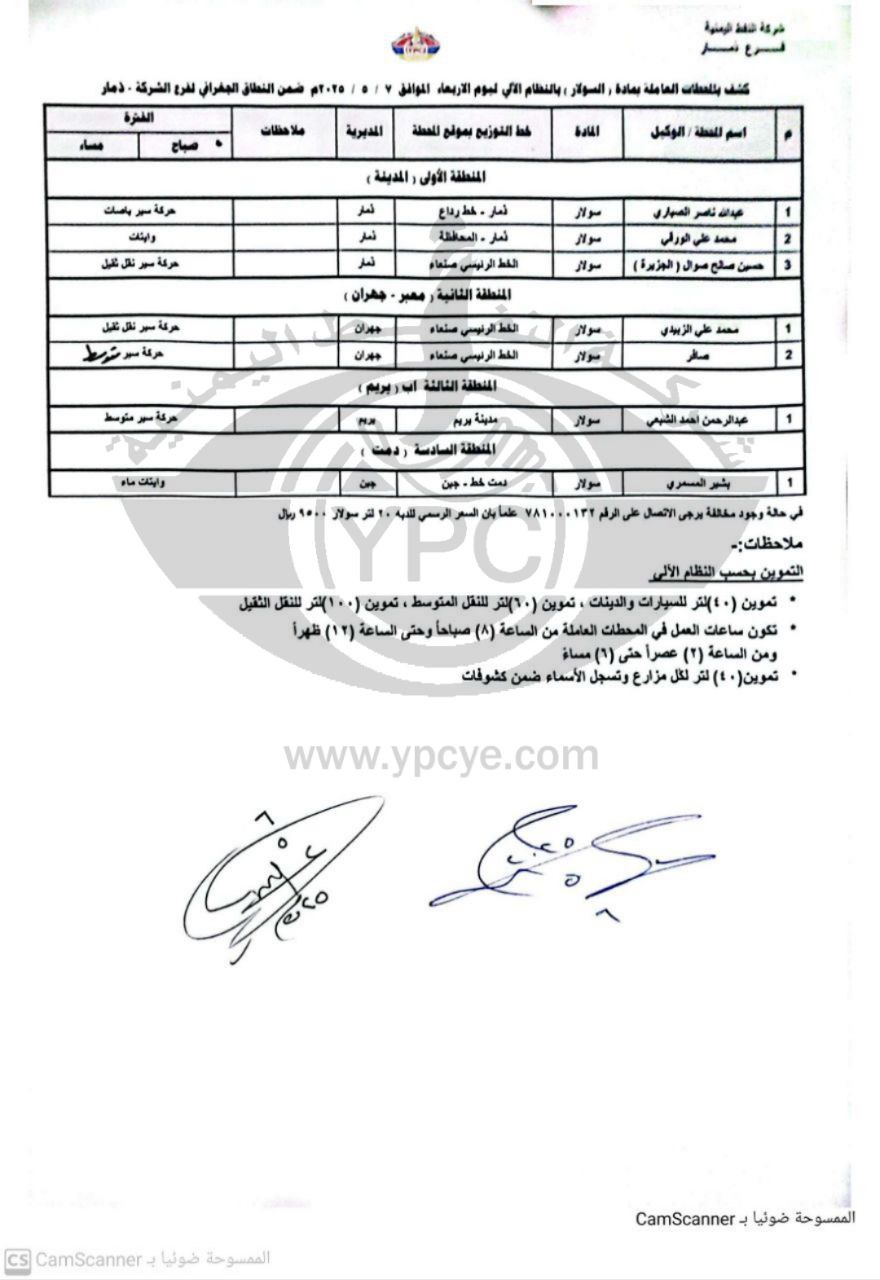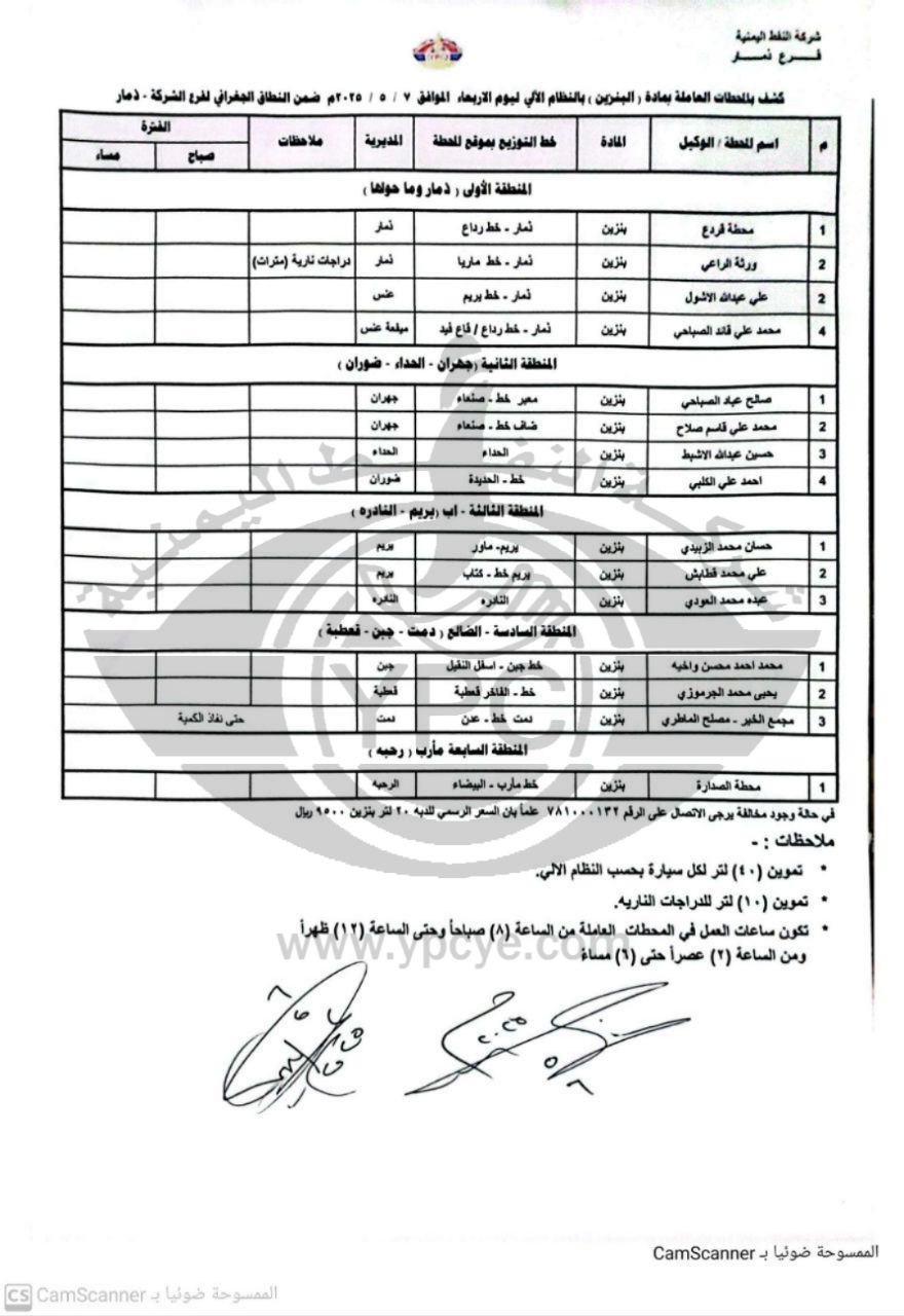 نشرت شركة النفط اليمنية كشوفات بأسماء محطات صرف مادتي الديزل والبترول في محافظة ذمار يوم غدا الاربعاء على النحو التالي :