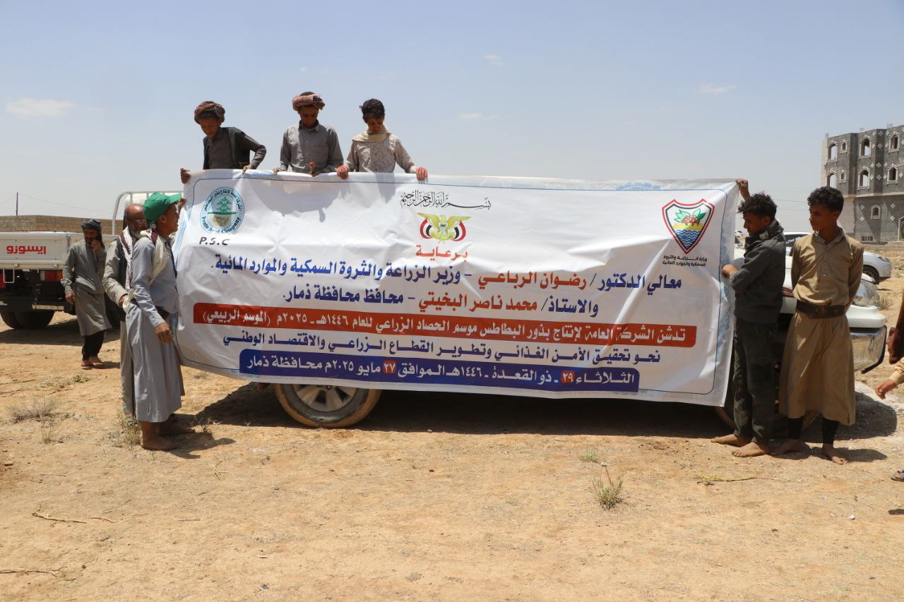 دشّن وزير الزراعة والثروة السمكية والموارد المائية الدكتور رضوان الرباعي، ومحافظ ذمار محمد ناصر البخيتي اليوم، حصاد الموسم الربيعي من محصول بذور البطاطس في حقول الشركة العامة لإنتاج بذور البطاطس.