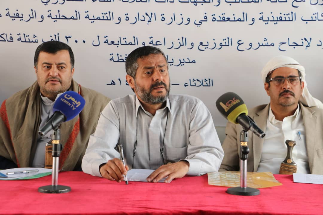 نظمت السلطة المحلية بمحافظة ذمار اليوم، لقاء تشاروي برئاسة المحافظ محمد ناصر البخيتي لمناقشة مخرجات ورشة العمل المنعقدة في وزارة الإدارة والتنمية المحلية والريفية الهادفة إلى تعزيز التكامل بين المكاتب التنفيذية إلى جانب تنسيق الجهود لإنجاح مشروع توزيع وزراعة 300 ألف شتلة فاكهة من مشتل هران لجميع المديريات.